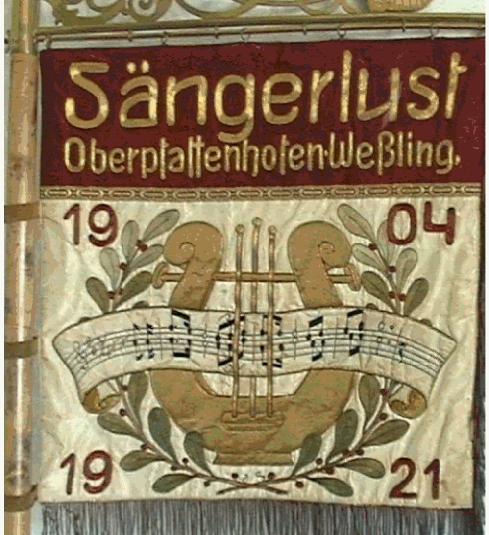 Was aus diesem Protokoll nicht hervorgeht, die Proben fanden im Nebenzimmer des Gasthof „Post" in Weßling statt. Der Gasthof zur Sonne in Oberpfaffenhofen hatte keine geeigneten Räumlichkeiten, wo ungestört gesungen werden konnte. Es ist auch nicht ersichtlich welchen Namen dieser Verein getragen hat. Als SB Th. Schneider 1907 in den Verein eintrat entstand schon der Sängerspruch, ebenso ist davon auszugehen, dass auch der Name des Verein schon bestand. Name und Sängerspruch sind auf der Standarte, die 1921 geweiht wurde, zu lesen.